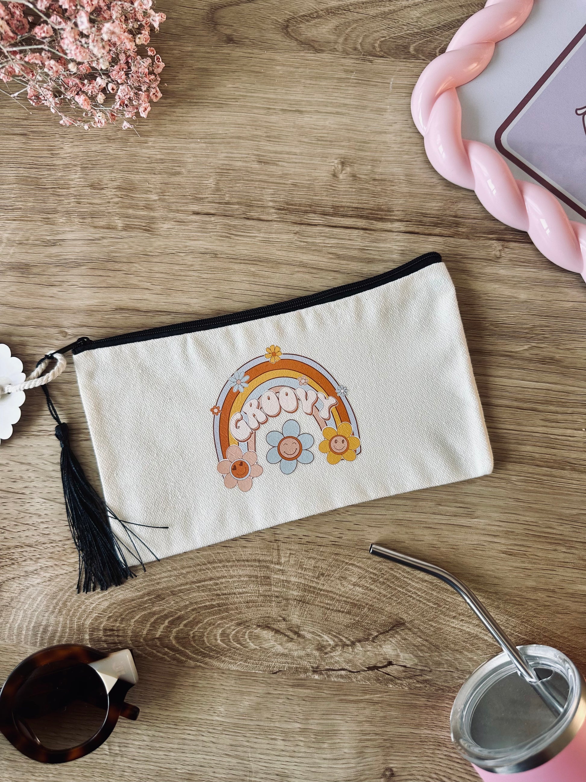 Cette pochette “Groovy” est un concentré de bonne humeur au format mini, parfaite pour organiser son sac ou apporter une touche de seventies à son quotidien.