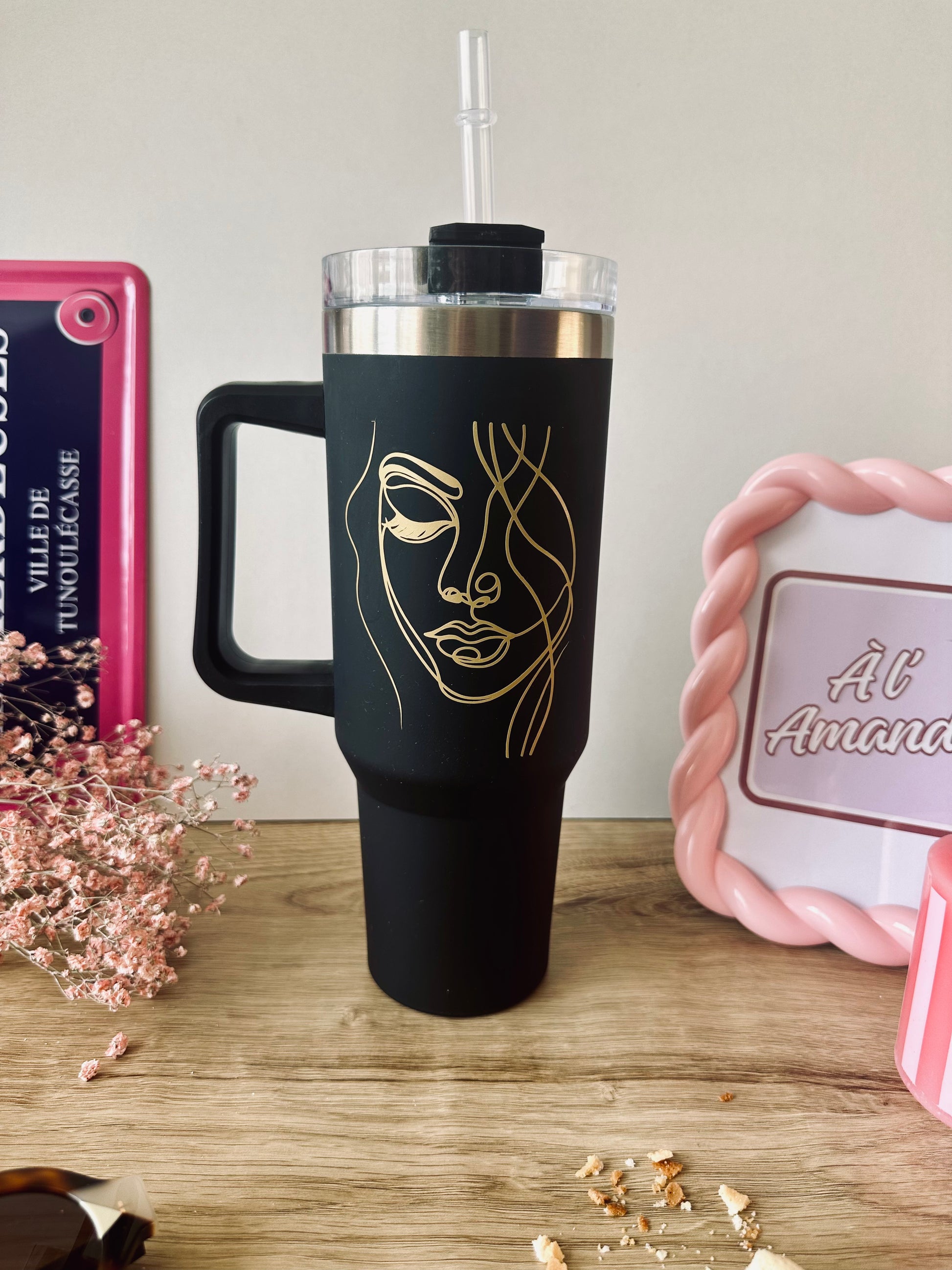 Ce tumbler noir et or incarne la confiance brute, la féminité affirmée, et le pouvoir du regard.