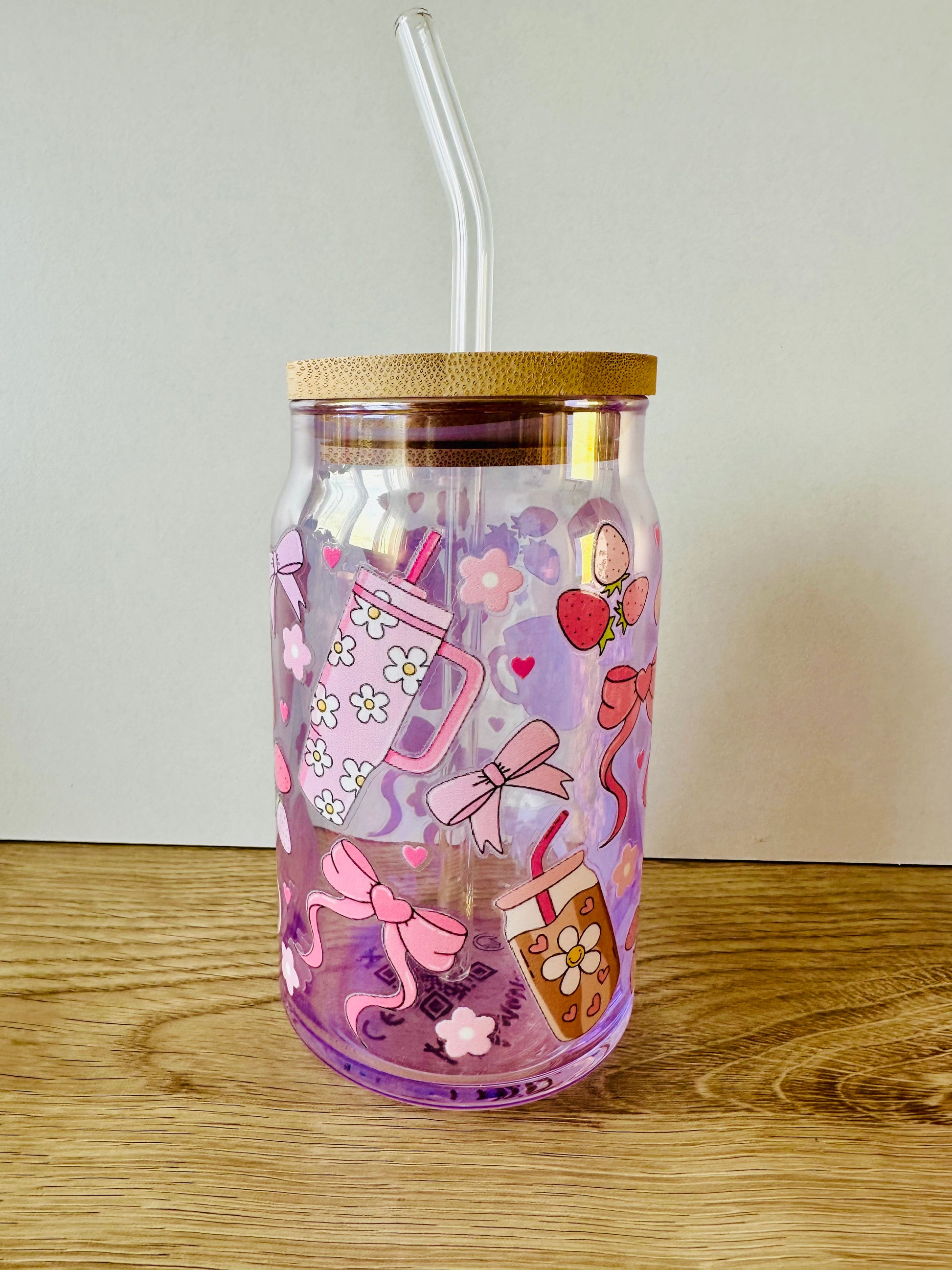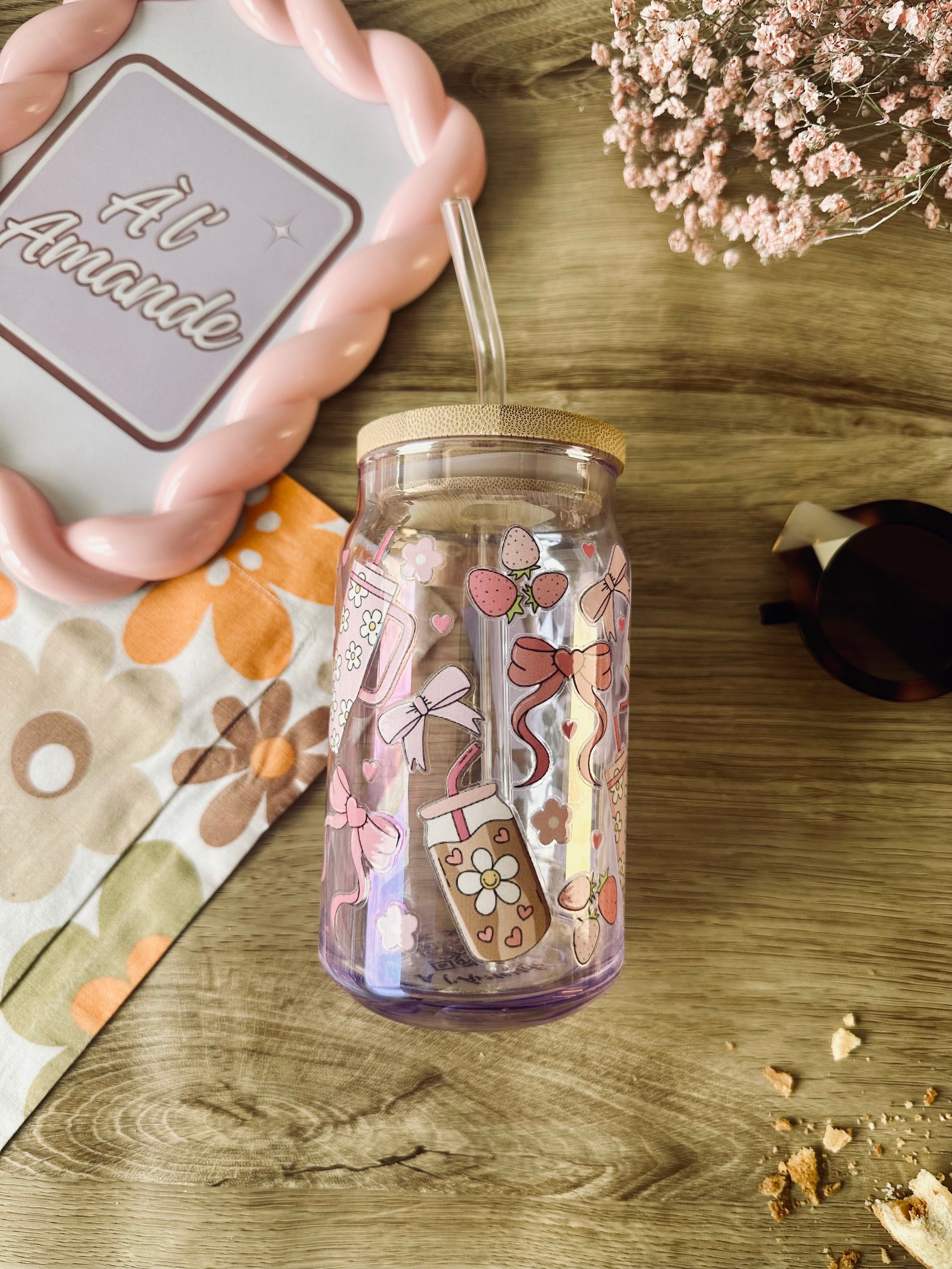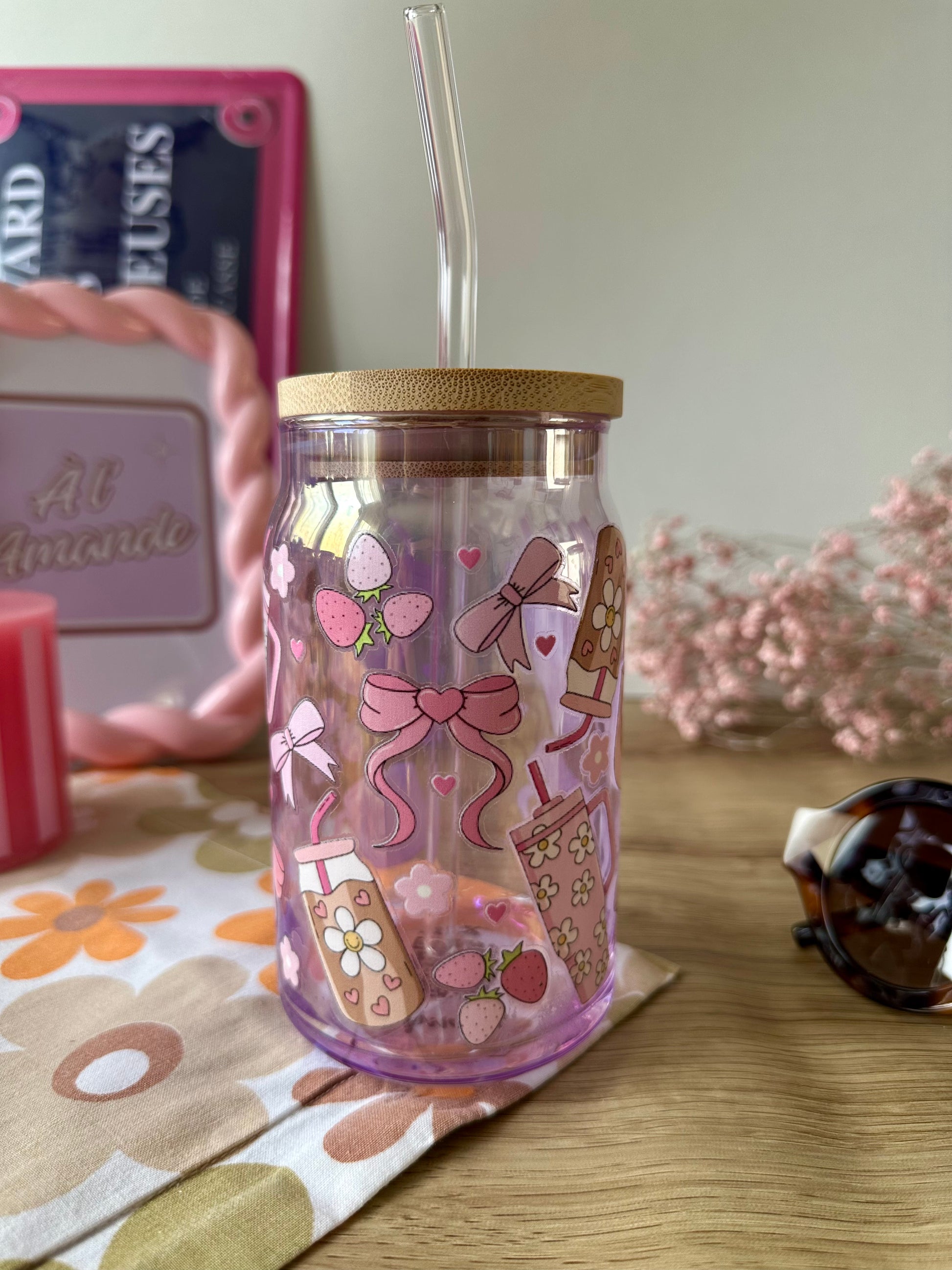 Ce verre canette cĂ©lèbre tout ce qu’on aime : les fraises d’étĂ© , les petits nĹ“uds girly , les fleurs naĂŻves , et les gobelets glacĂ©s ultra kawaii .Â