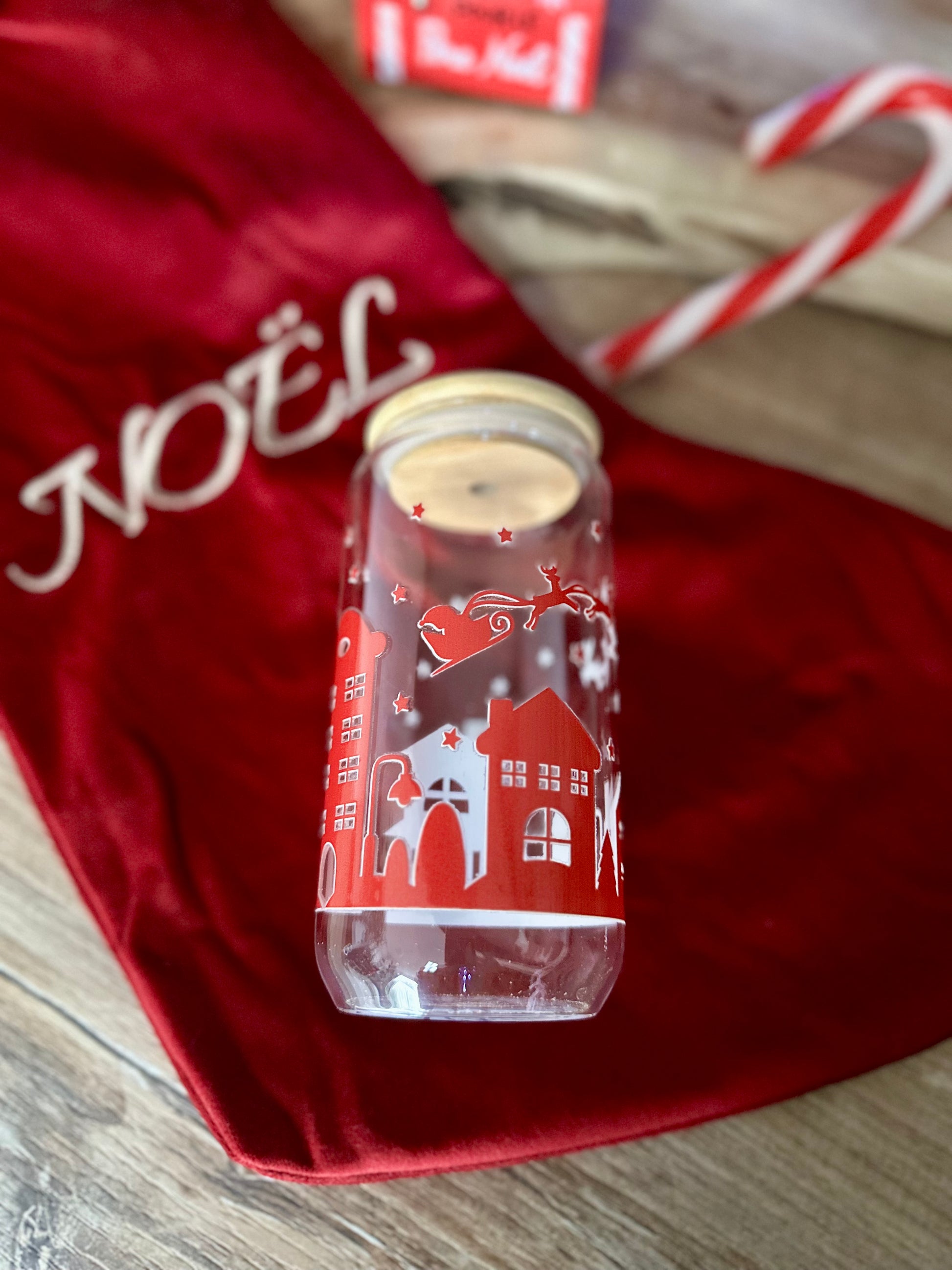 Ce verre canette, c’est une vraie petite scène de Noël : les toits, les sapins, les étoiles, les fenêtres éclairées… tout y est pour te glisser dans un mood cosy, tendre et cinématographique.