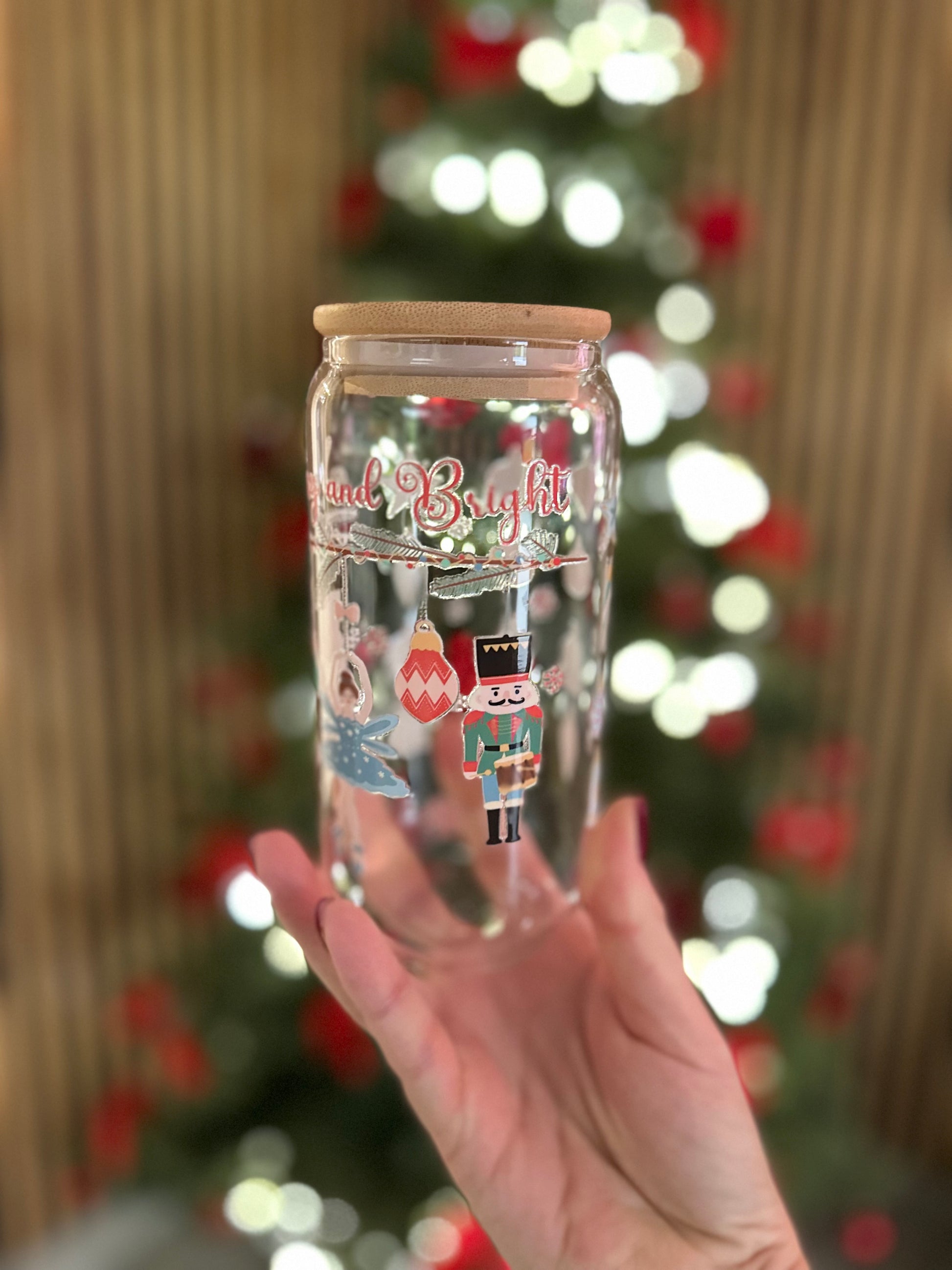 Voici le verre qui transforme instantanément ta boisson en petite scène féerique ✨. On y retrouve le soldat Casse-Noisette fier comme un général de Noël, et une ballerine légère comme un flocon, qui tourbillonne au milieu des décorations rétro, des ornements suspendus et des couleurs douces inspirées des cartes postales d’antan.