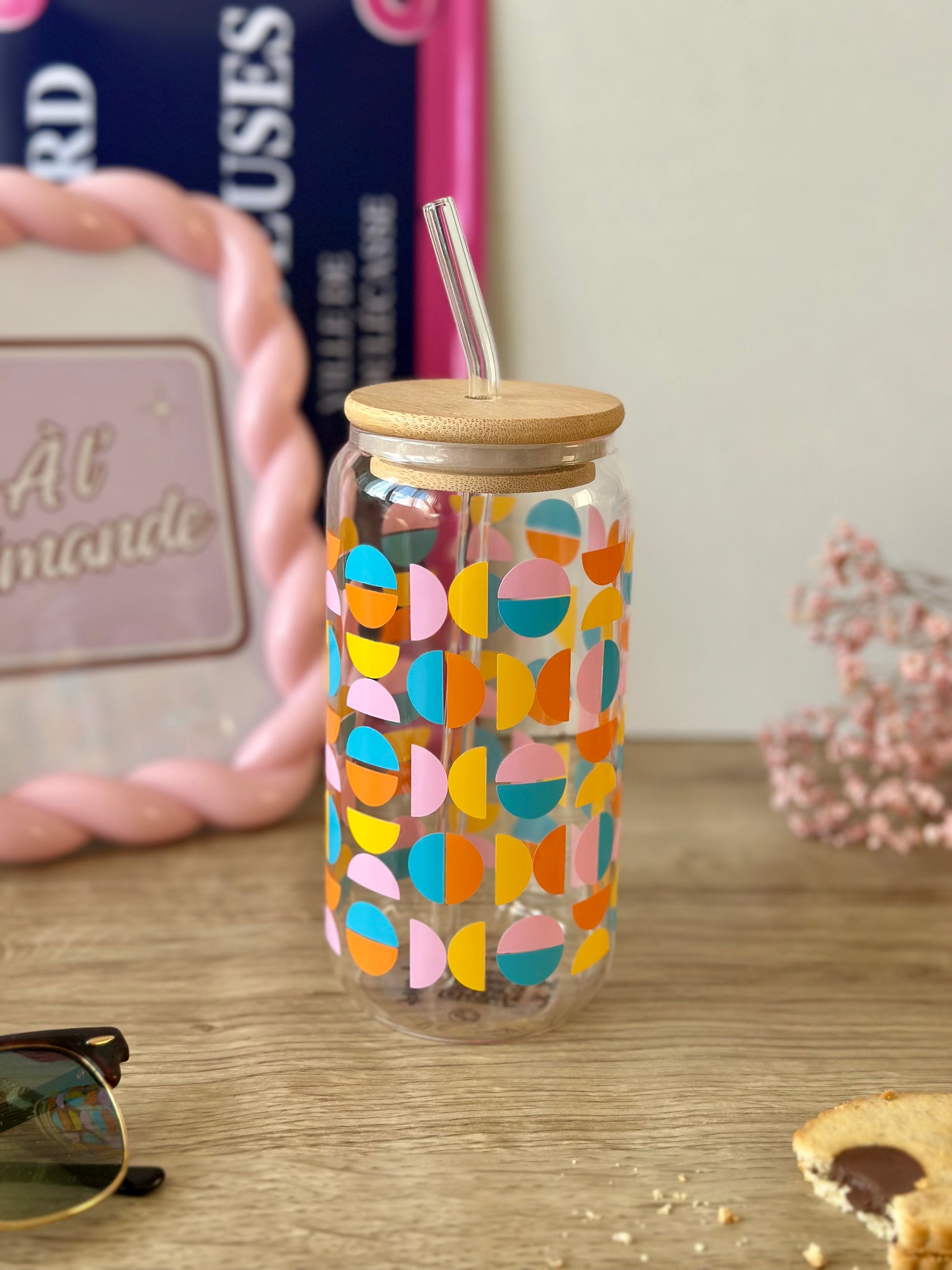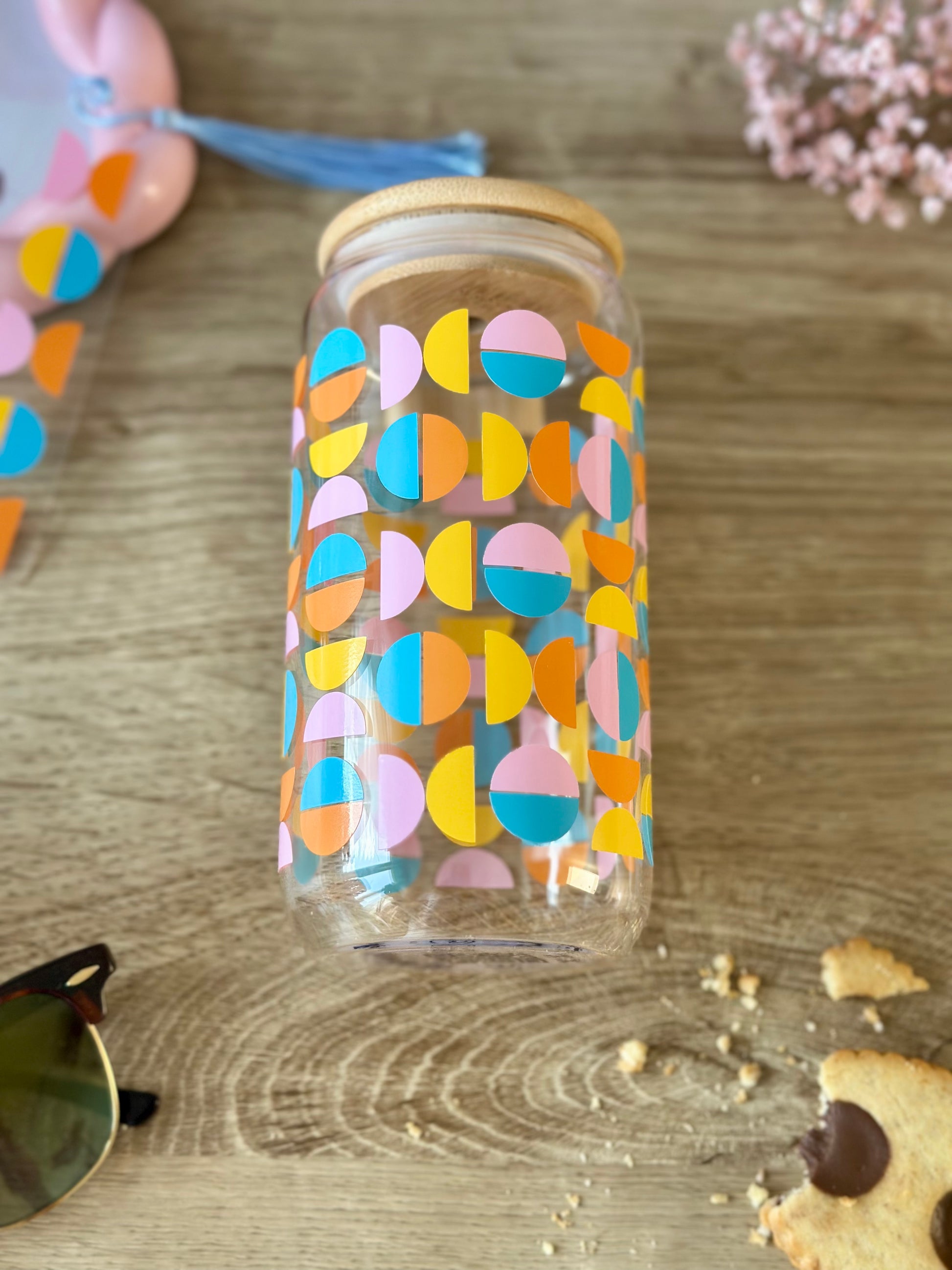 Ce verre, c’est une carte postale des années 70. Des motifs géométriques à gogo, des couleurs qui dansent, et une promesse : transformer ta pause boisson en petit shoot de nostalgie stylée.