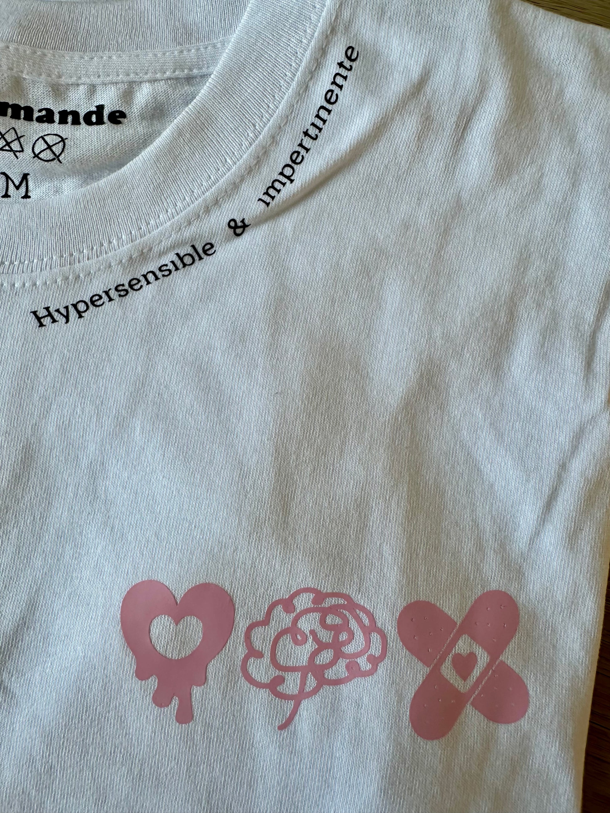 🪄 Pensé entre deux soupirs et trois éclats de rire, ce t-shirt a vu le jour dans mon atelier un peu chaotique mais très sincère. Fait à la main, fait à fleur de peau, et fait pour celles qui osent être elles-mêmes 🩷